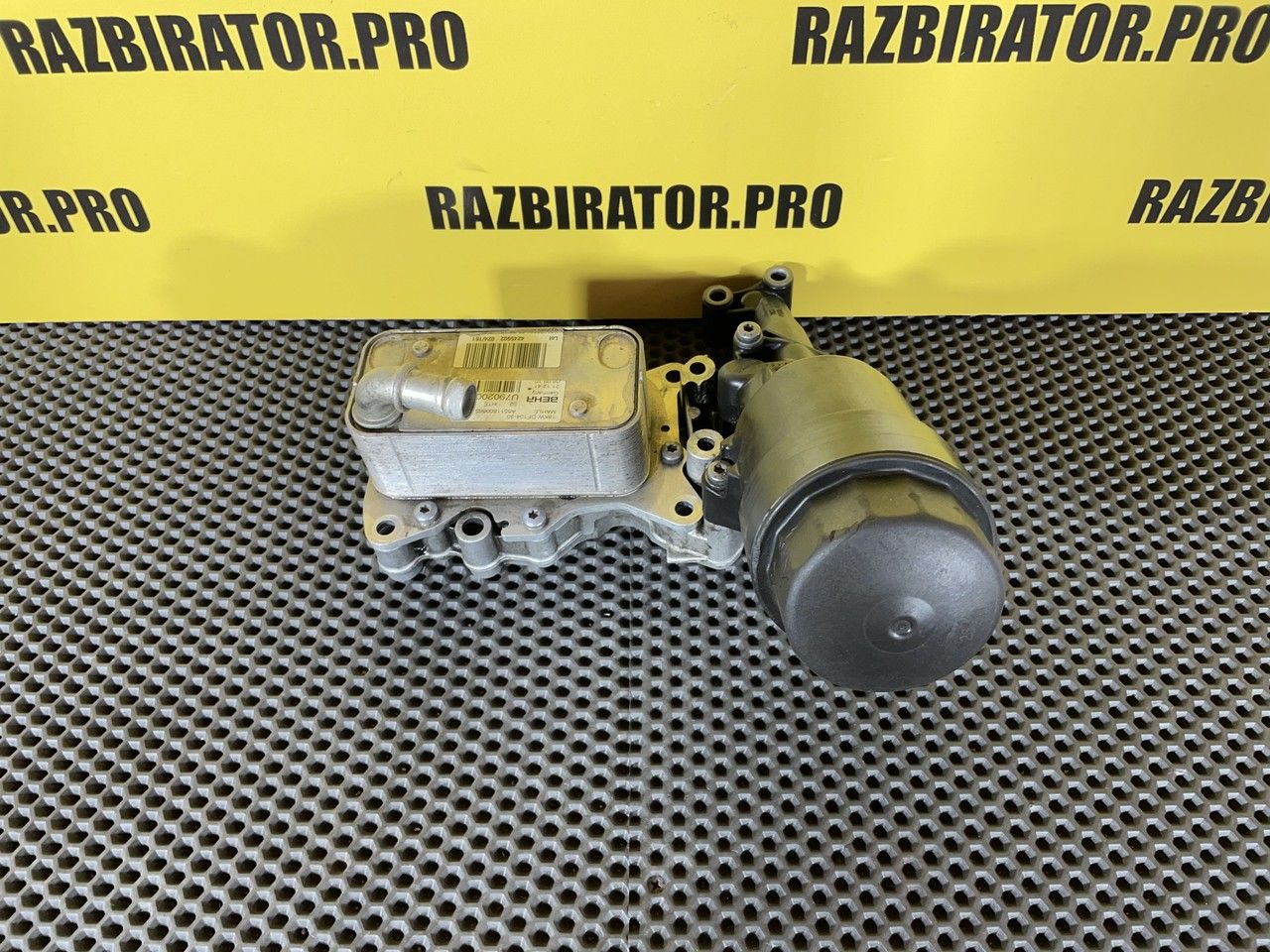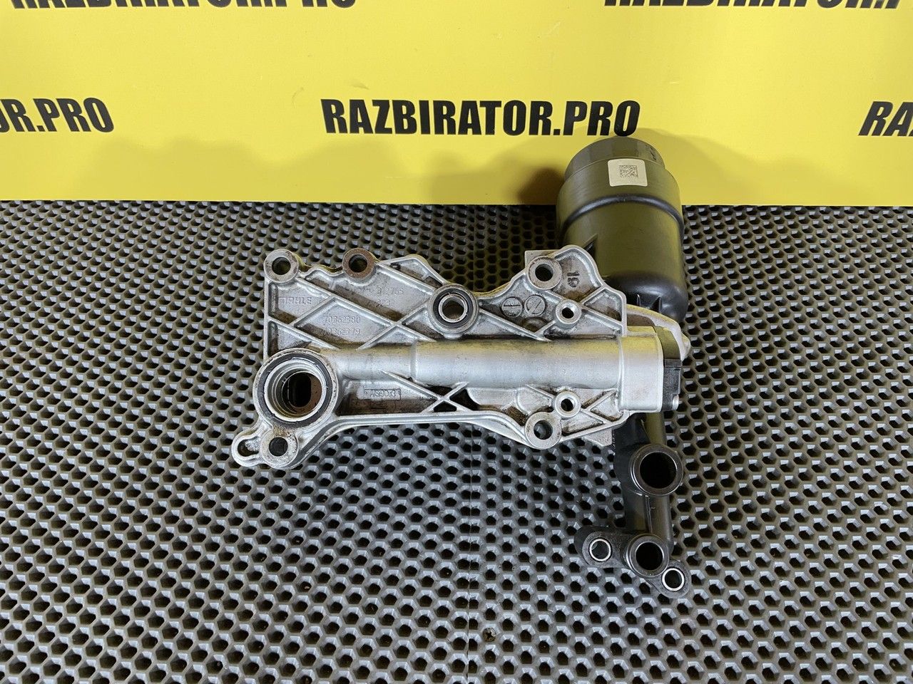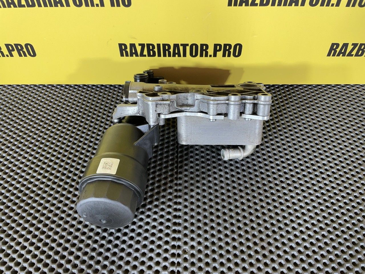 Корпус масляного фильтра в сборе с теплообменником. Масляный модуль, центрифуга, корпус центробежного очистителя масла, центробежный очиститель, масляная система, фильтрация масла, теплообменник, крышка масляного фильтра.
