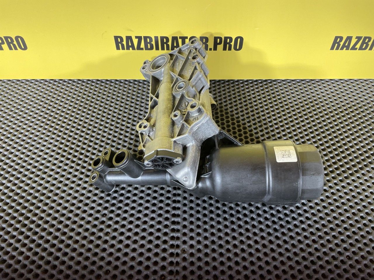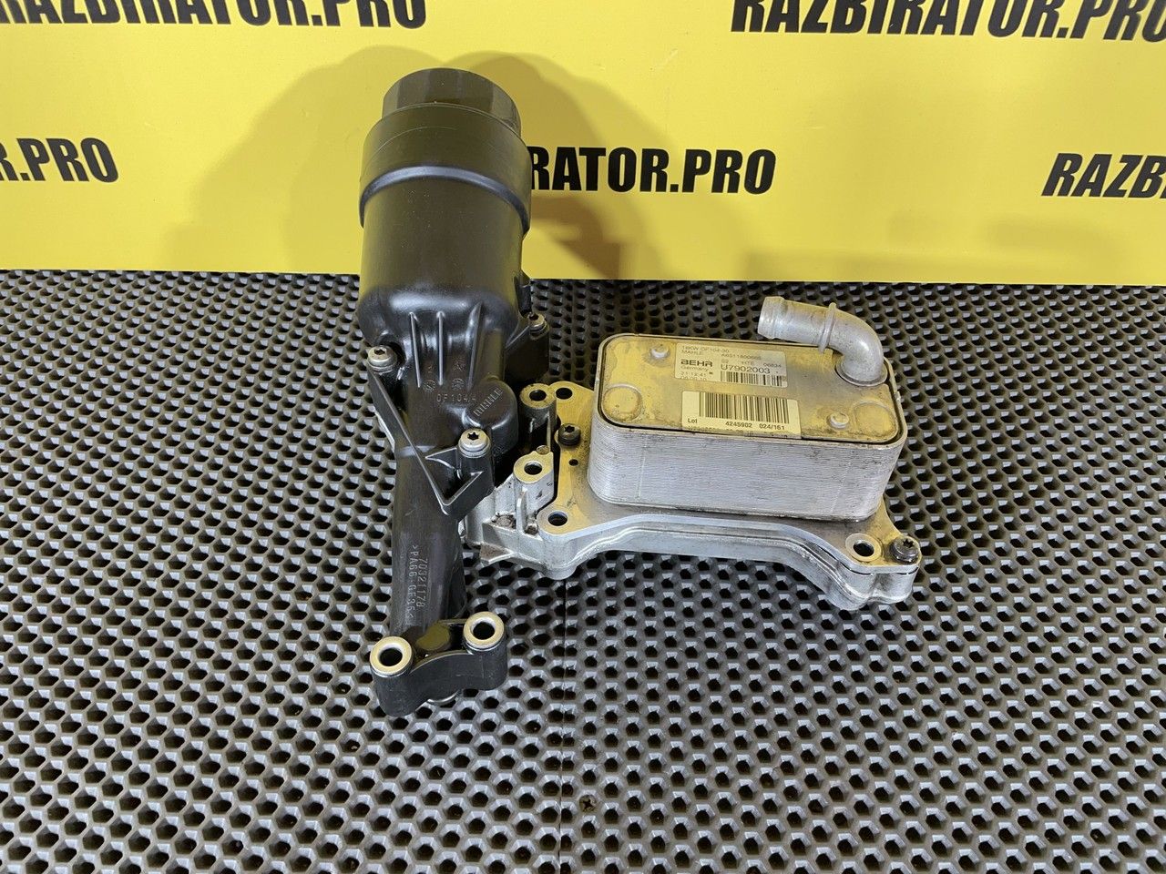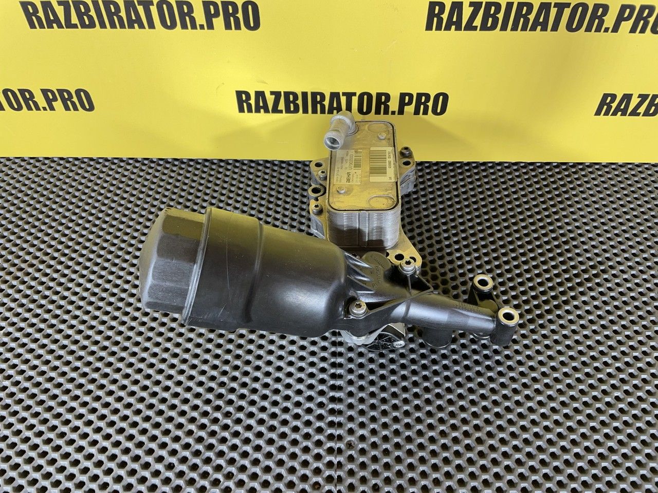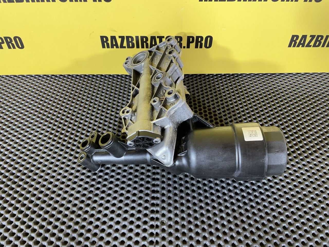 Корпус масляного фильтра в сборе с теплообменником. Масляный модуль, центрифуга, корпус центробежного очистителя масла, центробежный очиститель, масляная система, фильтрация масла, теплообменник, крышка масляного фильтра.