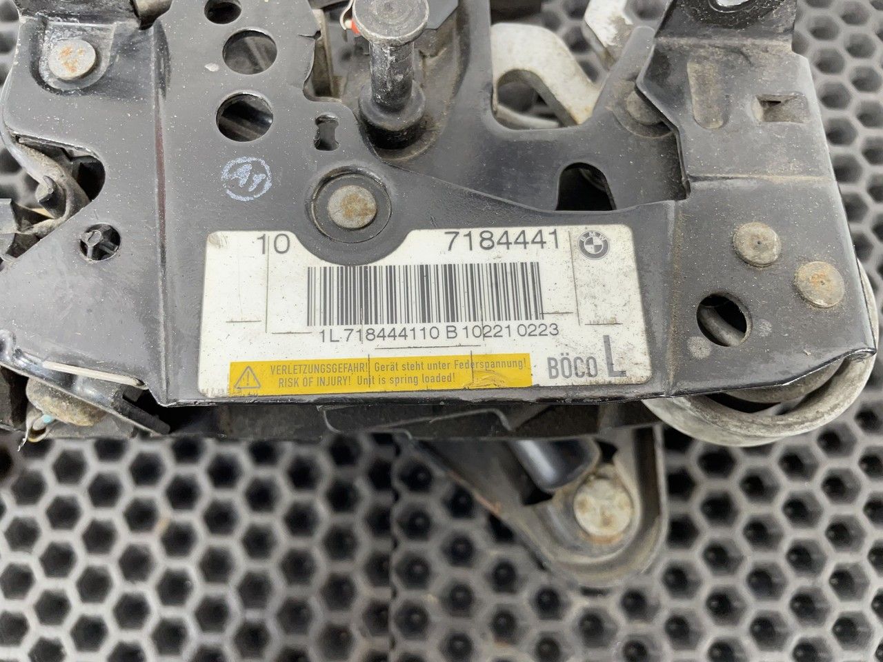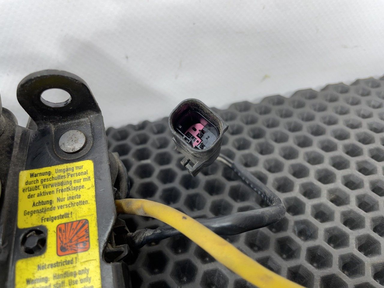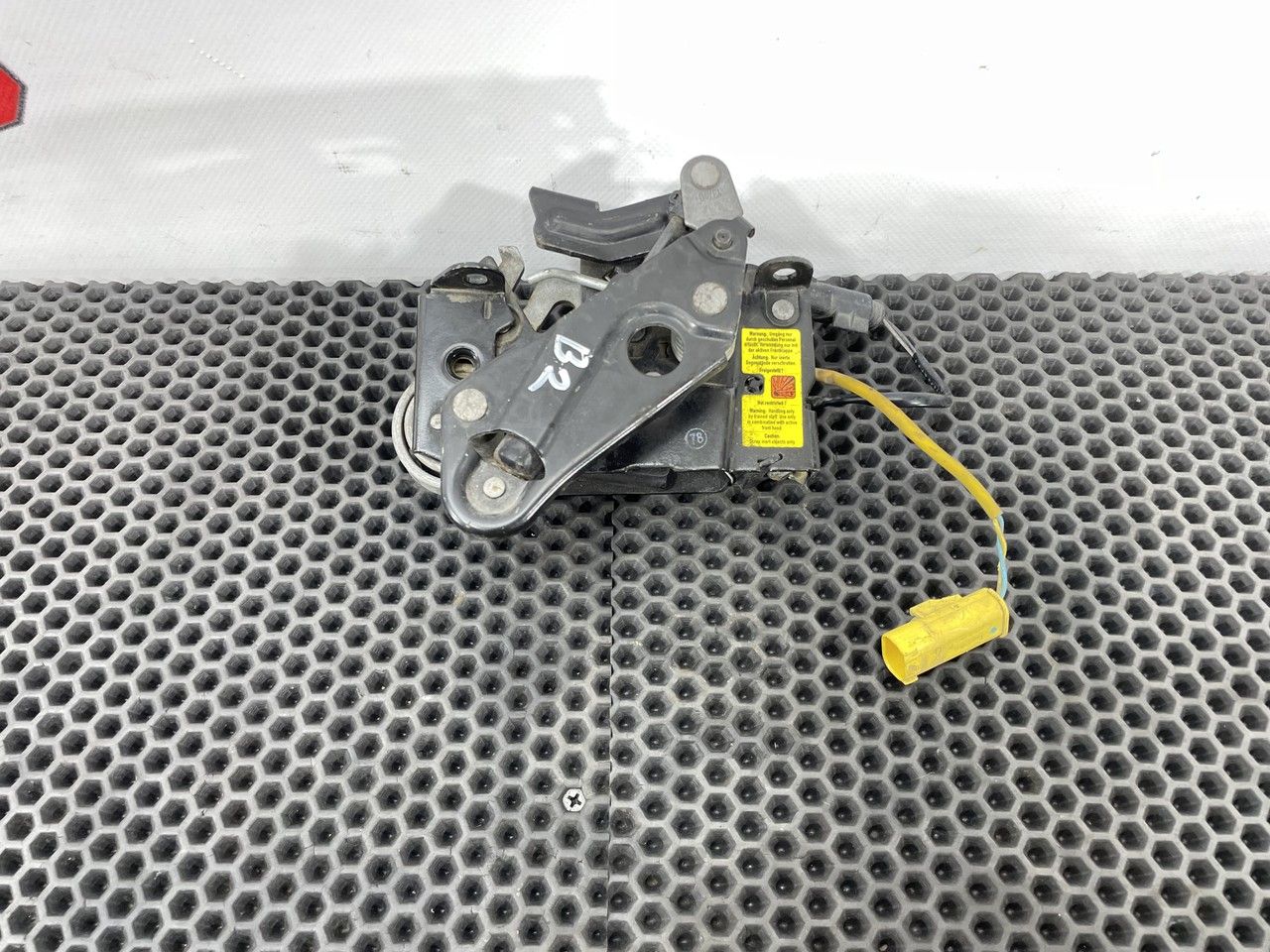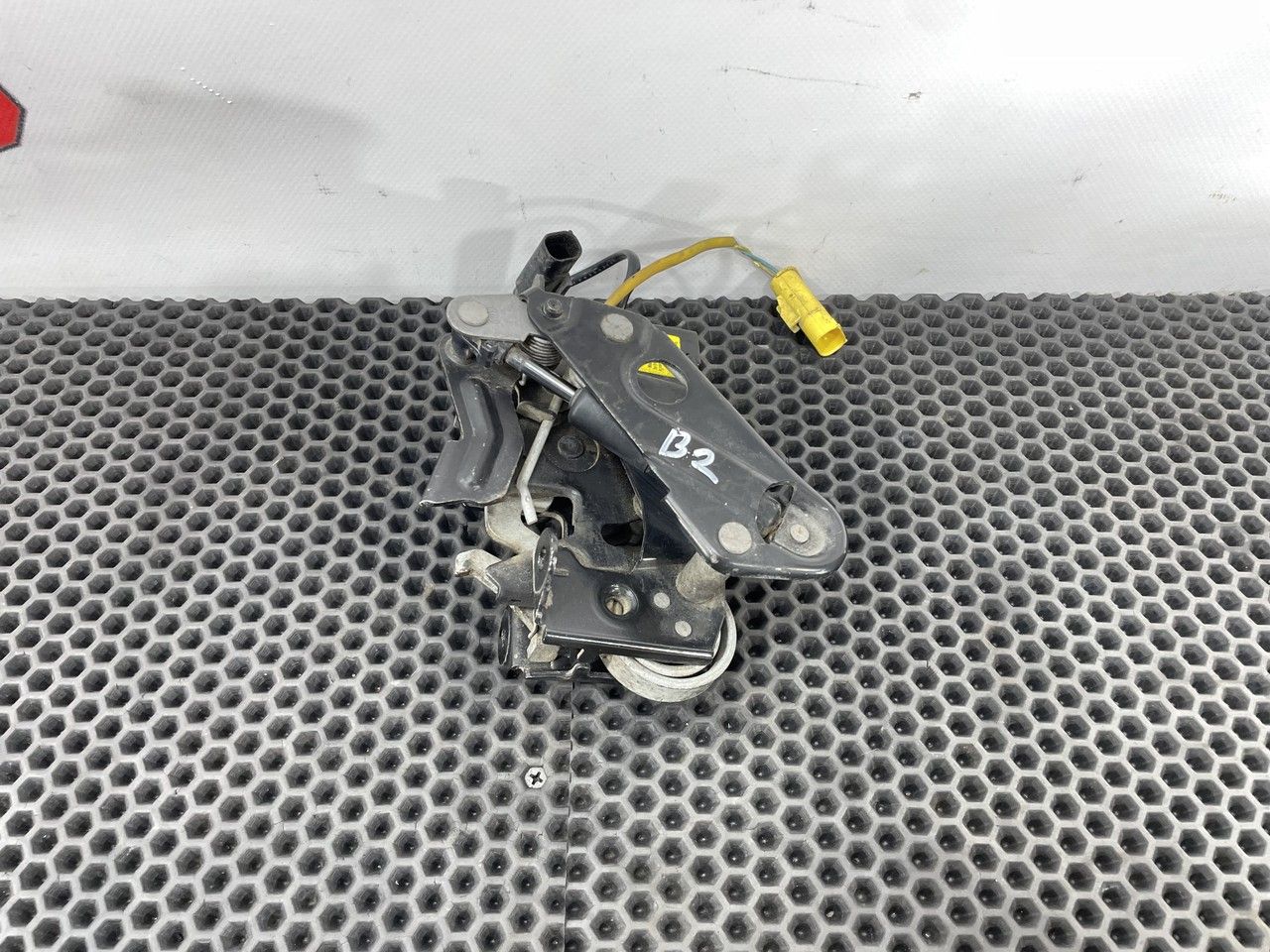 Замок капота активный левый, стопорный крюк слева.